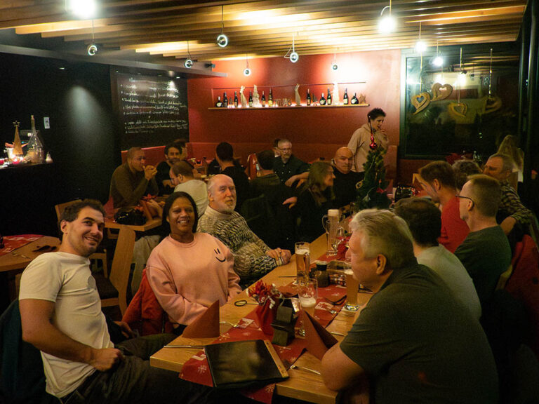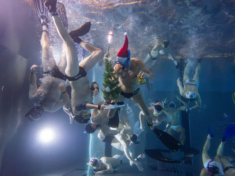 Um so erfreulicher läuft die inzwischen sehr routinierte Feierei der TSGW ab. Nach einem ganz normalen Training wird der TSGW-Baum mit Blei beschwert, im Becken versenkt und von jedem Teilnehmenden mit dem eigenen, wasserfestem Christbaumschmuck behängt. Nach dem auch in jedem Jahr beschwerlichen Versuch die wilde Meute auf einem Gruppenfoto abzulichten, trifft man sich zum Weihnachtswichteln zu Pizza und Bier. Nun wird der Baum Schmückchen für Schmückchen abdekoriert und jeder erhält neben seinem Baumschmuck ein kleines, zufällig bestimmtes Wichtelgeschenk.