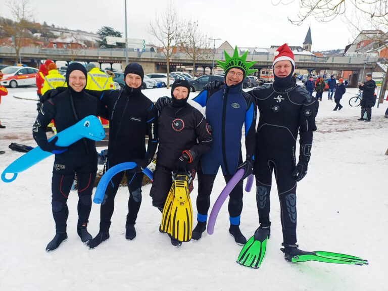 Am Ende bleibt ein starkes Gemeinschaftserlebnis, jede Menge Gänsehaut (nicht nur wegen der Kälte) und eine richtig starke Leistung unseres Teams – allen voran Tatjana, die einen Teil der Strecke kurzerhand mit nur einer Flosse zurücklegte. Chapeau!